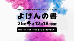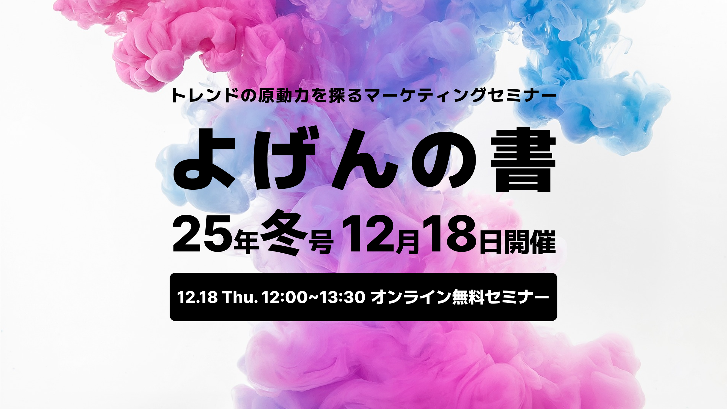 総合マーケティング会社で23年間、NBメーカーの商品開発・販促企画のアイディア創出のための調査に関わるとともに、2020年から師匠の「大久保惠司 氏」とともに企業のマーケター向けに毎月トレンドを発表するセミナーを継続開催する。2025年、大久保氏の逝去後に「よげんの書」をライフワークとして継続することを決意。