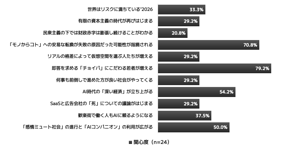 世界のリスクから目を背けがちですが、しっかり状況を把握することの大切さを改めて感じました。感情ミュート社会という言葉も印象的でした。伝えたいことは言葉にして伝えられる人でありたいです。