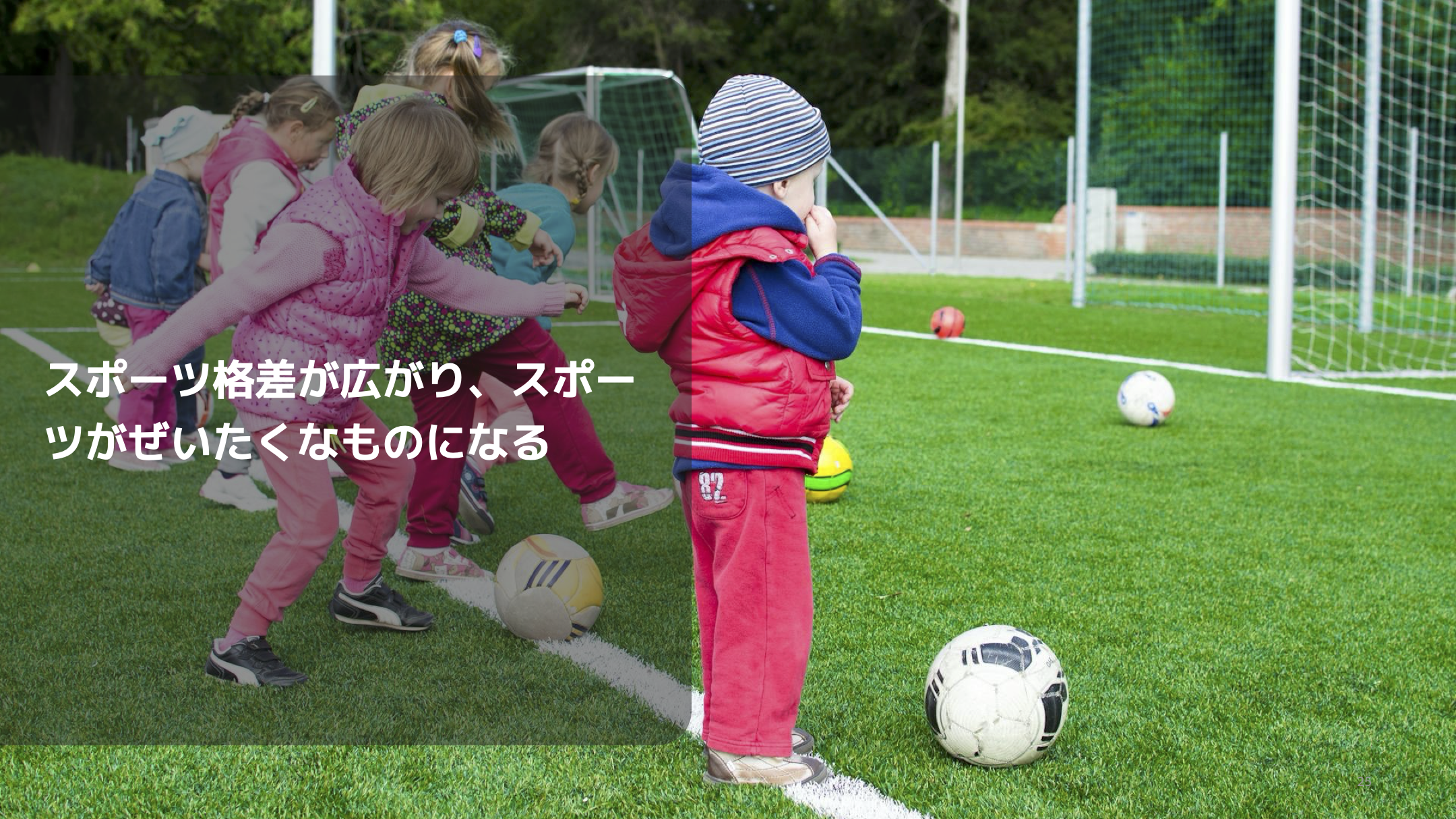 スポーツは、これまで経済環境にかかわらず多様な子どもたちが接点を持つ機会でした。多様性を学び、機会の平等を確保するためにも、スポーツ体験の環境整備が求められています。